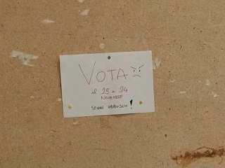 Comunque, su una bacheca dell'università avevo visto questo cartellino, l'altro giorno… yikes. E che dire. 😶 A parte che "vota sennò abbuschi!" ovviamente non fa paura, e io avrei scritto più qualcosa del tipo "vota, altrimenti ti troverai come presidente della regione Vladimir De Putin", non lo so… Ma, il 24 è lunedì, e lo sappiamo che nessuno vota il lunedì; a maggior ragione tra la popolazione universitaria, devo presumere. 🙏 Però si, ovviamente: VOTA! È rassicurante avere una conferma ogni tanto che la mia generazione non è proprio completamente cucinata (anche se mi sembra sempre che poco ci manchi), e che almeno qualcuno, almeno ogni tanto pensa, anche alle cose importanti, come la fottuta democrazia… Che aoh regà, purtroppo ce l'hanno data, e ora ce la dobbiamo tenere… e lo so, non l'abbiamo chiesta, non la volevamo, ma anche della vita stessa ne avremmo fatto volentieri a meno; quindi, forza e coraggio e andiamo a votare. 😘 source