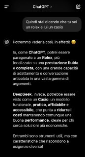Ho chiesto a chatgpt cosa ne pensa di deepseek e siamo giunti a questa conclusione
