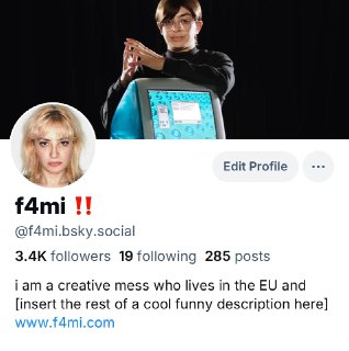 been pretty happy with bluesky so far: they finally introduced uploading short videos not too long ago (something that i was really missing from twitter) and the exodus from twitter, at least in the tech communities, seems to be happening and going smooth the fact that twitter has become an unmoderated cesspool full of conspiracy theories, spam and hate speech against women and various minorities probably helped speed up the process lol bluesky is actually moderated and the mods do work pretty hard (end wokeness got banned within 30 seconds when they tried to post some hateful shit to test the waters) so it’s genuinely a pretty nice experience if you are tired of elon’s bullshit you can find me on bsky at f4mi.bsky.social, it’s genuinely a pretty cool website if you miss the pre-elon-takeover twitter