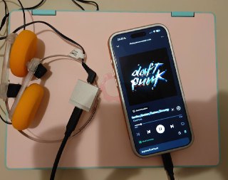 No headphone jack and I can't find my Apple dongle so had to improvise