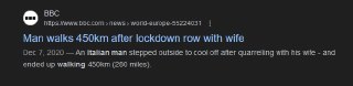 never underestimate the determination of an angry italian because he will literally walk 450km during peak lockdown just to cool off after arguing with his wife