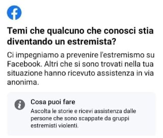 Facebook ha iniziato a chiedere se conosciamo qualcuno che sta diventando "un estremista". Fa parte, dicono, di un esperimento per supportare le persone che sono entrate in contatto con gruppi estremisti, o chi può essere a rischio. Di Elizabeth #Culliford su #Reuters https://www.reuters.com/technology/facebook-asks-are-your-friends-becoming-extremists-2021-07-01/