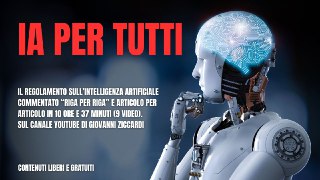 Bene, neanche a farlo apposta, e proprio nel giorno di pubblicazione dell'AI Act sulla Gazzetta Ufficiale UE, ho terminato la mia serie di video di commento articolo per articolo, e riga per riga, del testo legislativo. Trovate sul mio canale YouTube (vi consiglio di iscrivervi, per rimanere aggiornati/e sulle nuove uscite) 9 video, per circa 10 ore e 37 minuti, dove commento a schermo i considerando, gli articoli e gli allegati del Regolamento, evidenziando i punti secondo me importanti o da ricordare. Non è stato, in realtà, un lavoraccio, e l'ho fatto con grande piacere: è stata per me l'occasione per rinfrescare la conoscenza di un testo che dall'aprile del 2021 a oggi ha subito molte modifiche, e di condividere pubblicamente con voi alcuni punti critici o poco chiari. Spero che vi sia utile: guardatelo con calma, magari durante l'estate, così ci rivediamo a settembre super preparati e possiamo continuare a discuterne!