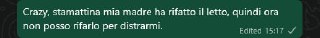 Crazy, stamattina mia madre ha rifatto il letto, quindi ora non posso rifarlo per distrarmi.