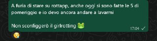 A furia di stare su rottapp, anche oggi si sono fatte le 5 di pomeriggio e io devo ancora andare a lavarmi Non sconfiggerò il girlrotting 🐸