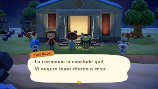 È incredibile che Tom Nook comunque, mannaggia a lui, non si stanca mai di dire frasi che non sapremo mai se sono strane apposta, cioè se come me ci mette proprio l'impegno a dire cose assurde… o se ha semplicemente il cervello costantemente un po' staccato (o spaccato)… 😬 Questo lo fa di continuo ma, proprio qui nelle inaugurazioni, alla fine, mi fa stranissimo che dica "Vi auguro buon ritorno a casa"… Cosa, perché, chi cavolo è che a questa inaugurazione ci stava venendo da casa propria, e ora ci deve ritornare? 😑 Io che sono la gamer sto ovviamente poco dentro casa mia nel gioco (e sottolineo, nel gioco…), mentre gli isolani animali (che sono ancora un ridicolo totale di 2, sigh), ovviamente un po' se ne stanno sempre in giro fuori… Specialmente a quell'ora della mattina come oggi per il ponte, vorrei dire… ma in realtà anche la sera tardi, come quando mesi fa ebbi l'inaugurazione del museo, ma dato il buio la frase non mi suonò subito strana allora. BAH! 🤨 (Pignio: 1, 2) source