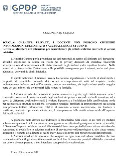 #GarantePrivacy: i docenti non possono chiedere informazioni sullo stato vaccinale degli studenti e dei loro familiari. Ecco il comunicato stampa https://www.garanteprivacy.it/home/docweb/-/docweb-display/docweb/9702160