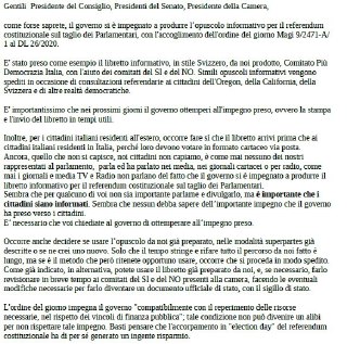 La lettera inviata alle istituzioni da +Democrazia per promuovere la stampa e l'invio a tutti gli italiani del libretto informativo sul referendum sul taglio dei parlamentari