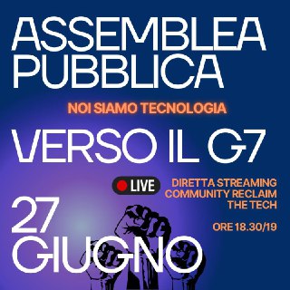 Questa sera a Bologna inaugureremo una nuova modalità con cui parlare di tecnologie. In vista del G7 Scienza e Tecnologie di luglio andiamo nello spazio pubblico, la piazza. Di tech se ne deve parlare apertamente, in modo democratico, anche in piazza, non chiusi in una stanza. Per questo a Bologna ci vedremo in piazza del Nettuno alle 18.30, mentre in community di RTT trasmetteremo in diretta l’assemblea con la possibilità di interagire tramite la chat per rafforzare i messaggi o far emergere nuove parole da portare nello spazio pubblico della contesa sulle tecnologie. Tra le 18.30 e le 19, con i tempi della piazza, daremo avvio alla diretta qui in community! Riprendiamoci le tecnologie, perché noi siamo tecnologia.