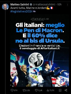 🚨🚨🚨 ESCLUSIVA 🚨🚨🚨 Dopo aver visto questo tweet di stamani e i risultati iniziali delle elezioni francesi Donald Trump ha telefonato a Elon Musk, Satya Nadella, Sundar Pichai e Mark Zuckerberg scongiurandoli di eliminare ogni profilo ufficiale di Salvini e di impedirgli di postare fino al 5 novembre 2024.