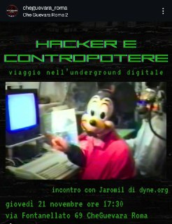 HACKER E CONTROPOTERE - viaggio nell'underground digitale L'incontro con Jaromil di dyne.org si terrà domani giovedì 21 novembre alle ore 17:30 in via Fontanellato 69 presso il CheGuevara Roma
